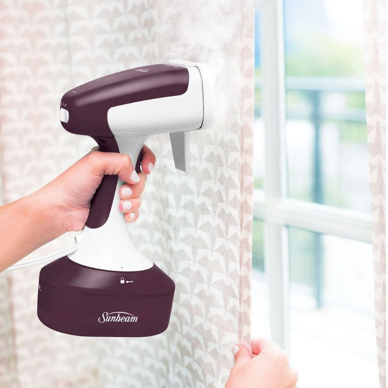The Sunbeam Power Steam Handheld Steamer has 1400W of power for a fast 40sec heat up, a powerful steam shot and 2 steam settings to zap wrinkles and freshens garments fast. The large steam plate with wide steam exit is designed to press out tougher wrinkles. With up to 18 minutes of continuous steam and a generous 300ml water tank capacity, steam clothes, curtains, cushions and furnishings without having to stop and refill the water tank. Includes 4 accessories for delicate to heavier fabrics, lint removal and more.